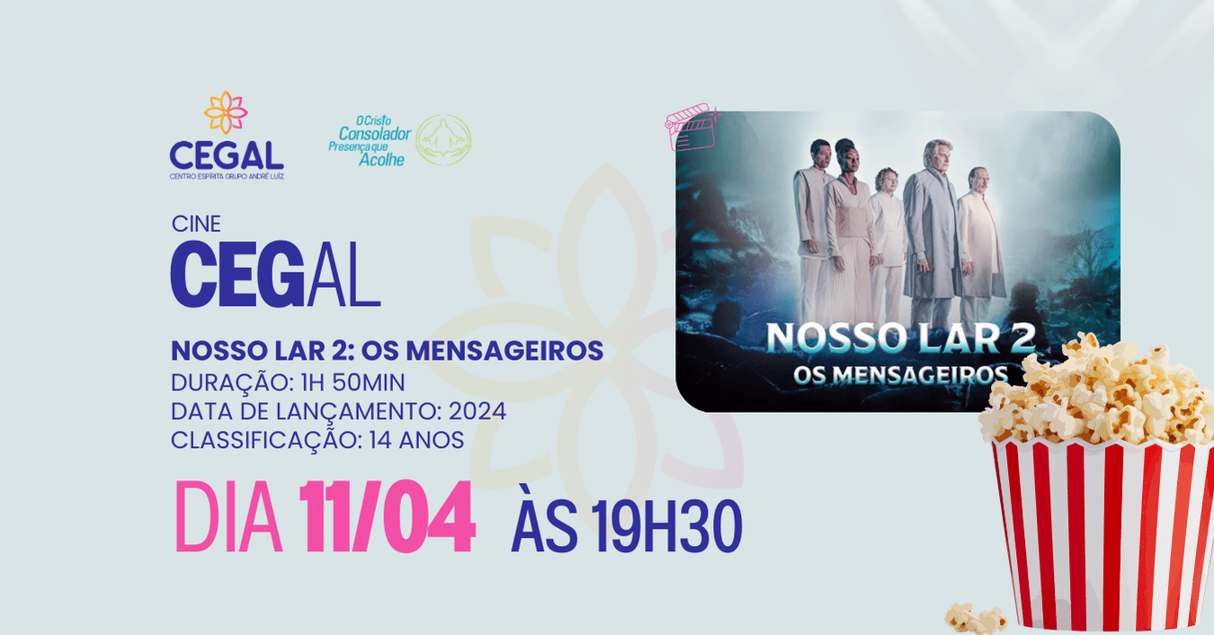 No dia 11 de abril , vamos nos reunir para assistir juntos a “Nosso Lar 2: Os Mensageiros”.