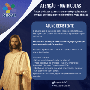 As matrículas deste semestre já estão encerradas. Pedimos que acompanhe em nosso site e em nossas redes sociais os informativos sobre as matrículas do próximo semestre!